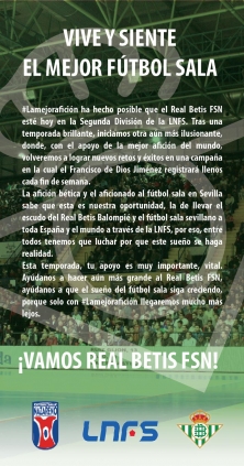 Esta temporada, tu apoyo es muy importante, vital. Ayúdanos a hacer aún más grande al Real Betis FSN, ayúdanos a que el sueño del fútbol sala siga creciendo, porque solo con #LaMejorAfición llegaremos mucho más lejos.